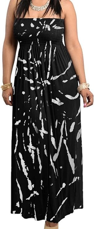 811 - Smocked Chest Strapless Tube Long Maxi Beach Cover-up Dress