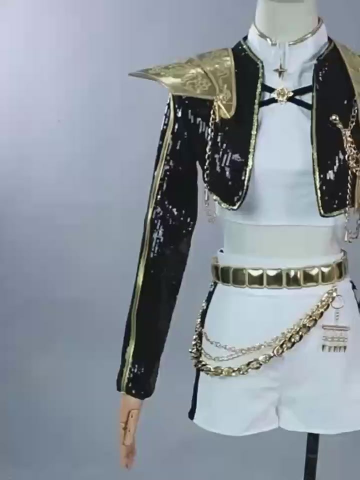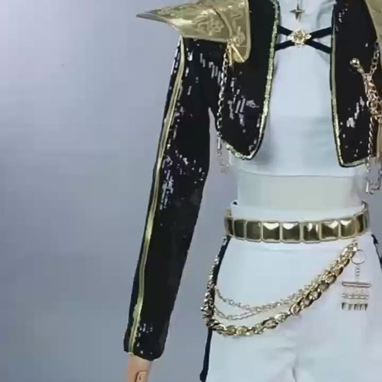 Dive into the world of KPop with this Demon Hunters Rumi costume set. Perfect for Halloween cosplay, it includes a sequined jacket and gold chains. Transform effortlessly into your favorite character. Designed for kids, it ensures a stylish and authentic look. Ideal for KPop fans, it brings the magic of KPop to life.